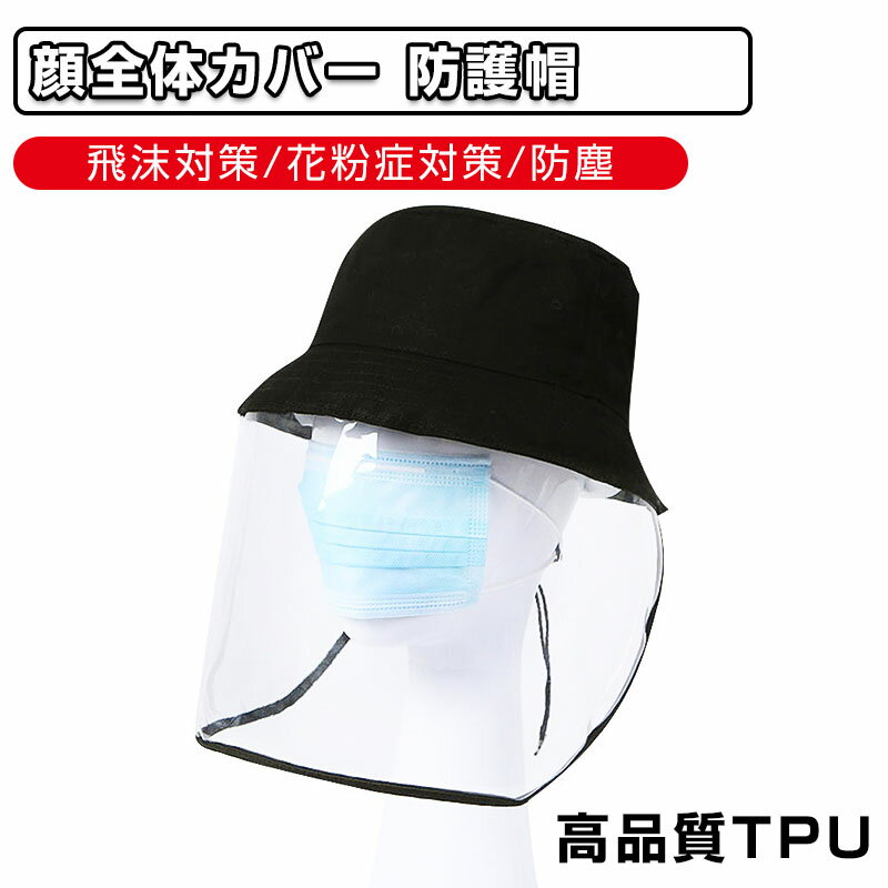 帽子 飛沫防止 透明フェースカバー付き サンバイザー風 フェイスガード 花粉症対策 男女兼用 キャップ ハット 顔面保護 防風 サイズ調節可能