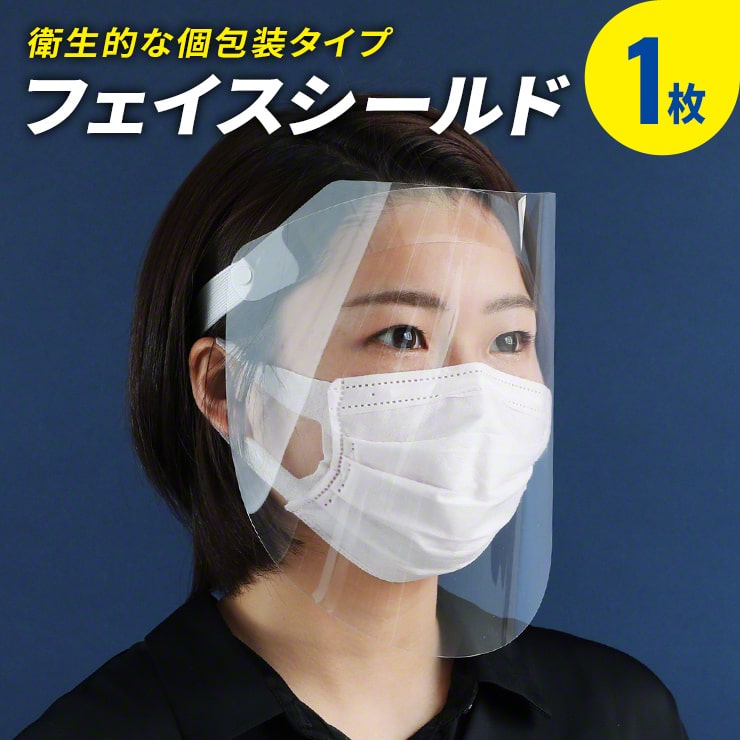 【1枚入】 フェイスシールド 飛沫ガード 個包装 全面透明 軽量 フェイスガード ウイルス ウイルス対策 広範囲保護 眼鏡対応 眼鏡着用可 マスク対応 マスク着用可 メガネ 飛沫 メガネの上から マスクの上から 工場 送料無料 シールド 粉塵 眼科 キャップ 歯科 サンバイザー